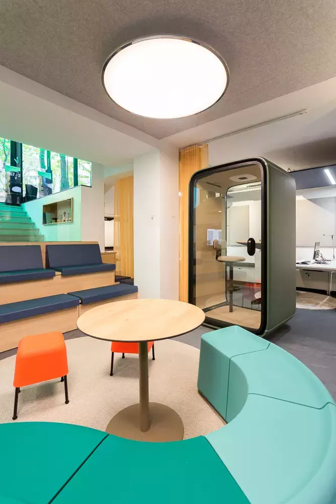 Low stool made of Flexyskin with metal legs.